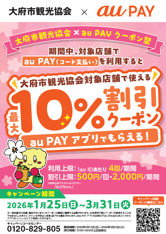 市内でのお買い物・お食事がお得にお楽しみいただける「大府市観光協会×au PAYクーポン祭」を開催します!期間…